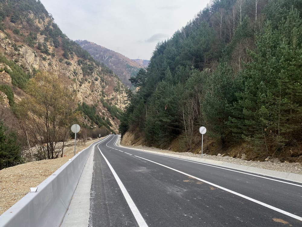 Строительно-монтажные работы велись в течение двух лет: практически с нуля устроено основание дороги, уложено двуслойное асфальтобетонное покрытие. Специалисты обновили семь мостовых сооружений, проложили под дорожным полотном водопропускные трубы, вдоль трассы установили железобетонные лотки для отвода воды. Построены верховые и низовые подпорные стенки, склоны укреплены специальной армированной сеткой — она покрывает площадь в 38 тыс. кв. м и защитит дорогу от камнепадов.