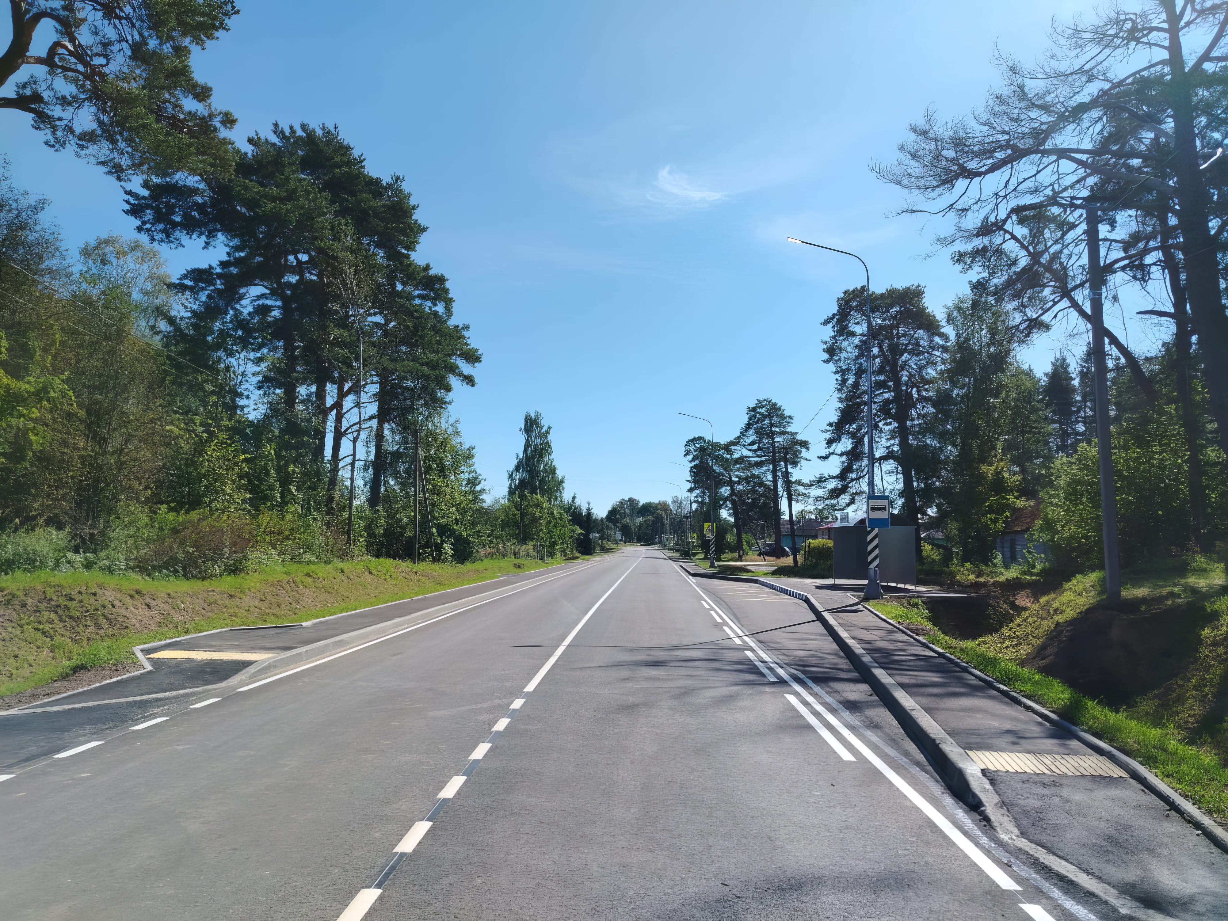 Дорожники приступили к работам в прошлом году. Они подготовили основание трассы, устроили асфальтобетонное покрытие вместо гравийного и укрепили обочины. Для безопасности всех участников дорожного движения обустроены тротуары, линии наружного освещения, автобусные остановки для комфортного ожидания общественного транспорта. Кроме того, установлены необходимые знаки и нанесена разметка. Подрядная организация завершила капитальный ремонт с опережением сроков, установленных контрактом.